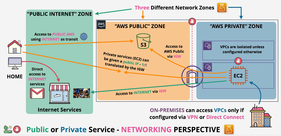 - You can also configure virtual/physical connections between on-premises networks and AWS VPCs