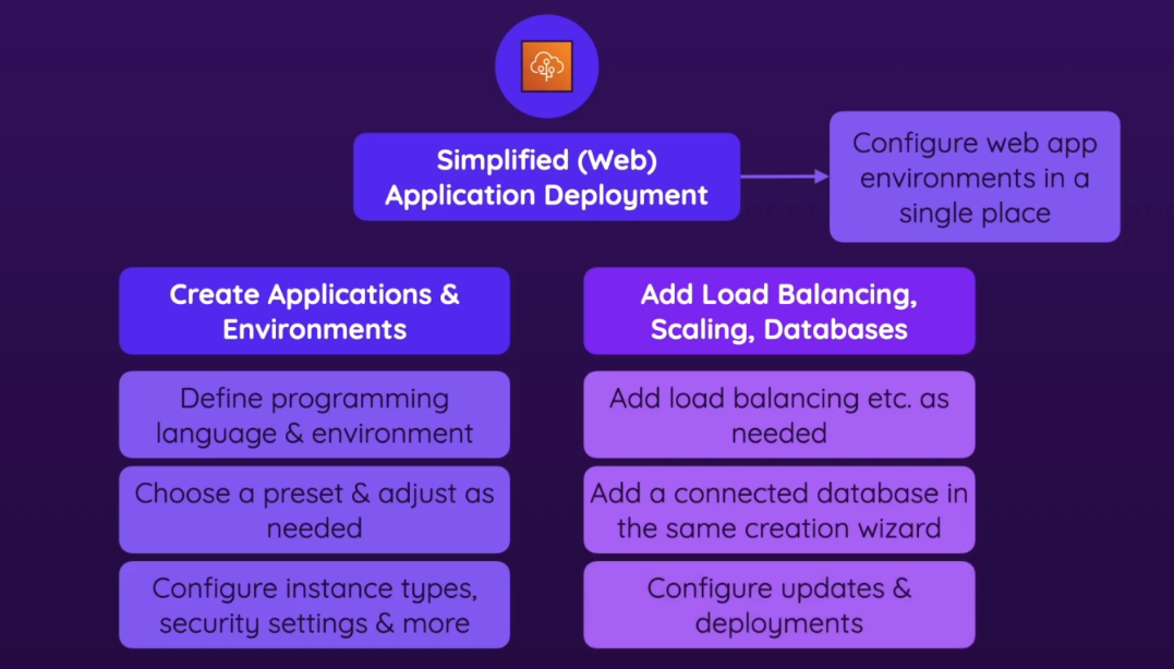 • uses EC2 instances under the hood, so you configure instance types and security settings (but less options than the EC2 wizard)