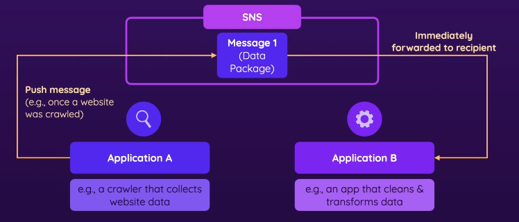 • messages are pushed directly to applications registered as subscribers