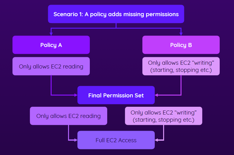 • Multiple policies can be combined to extend the set of permissions