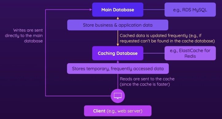 - Technically, ElastiCache can store data and serve as a data store, but it is not a database in the traditional sense