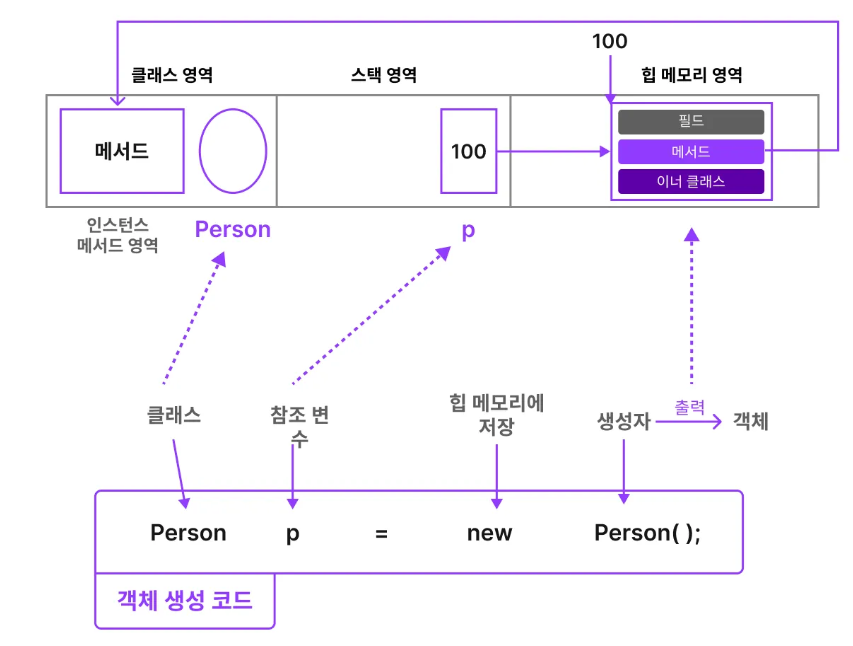 • 즉 같은 클래스로 만든 모든 객체는 동일한 메서드 값을 공유하기 때문에 여러 번 같은 메서드를 선언해 주는 것이 아니라 한 번만 저장해 두고 필요한 경우에만 클래스 영역에 정의된 메서드를 찾아 사용할 수 있는 것입니다.