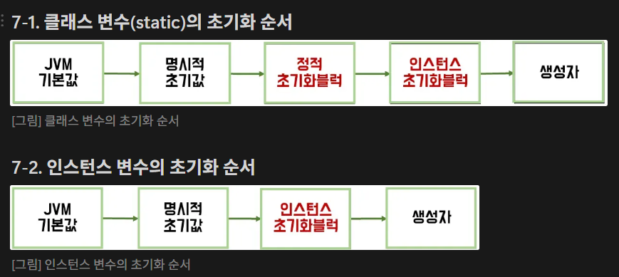 | 3 | static 초기화 블록 | static {} 안의 코드 실행 | static {} block runs for more complex logic |