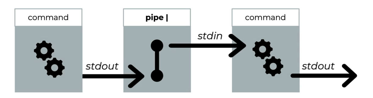 stdout) of one command into the standard input (stdin) of another command- So you can chain multiple commands together and build more complex functionalities