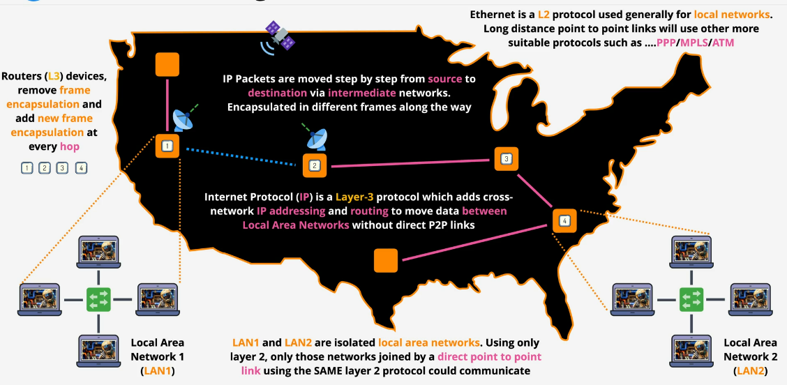- Layer 3 IP Packet: Contains the source & destination IP addresses