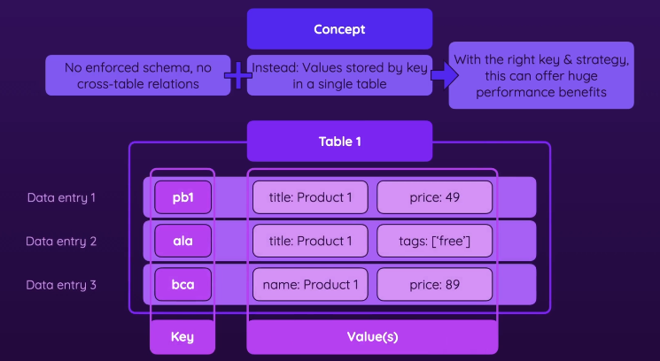 - uses things such as key/value pairs, or document models where u store everything in a single document (like a JSON)