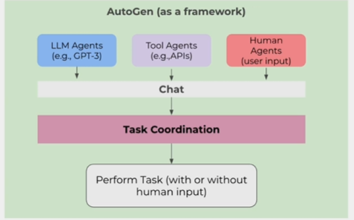 - AutoGen allows multiple tools to chat with each other