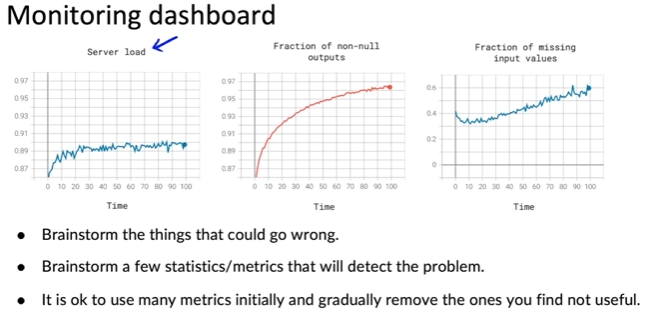 • It’s useful to brainstorm metrics to monitor that can detect changes  including concept drift or data driven or both, and multiple stages of the pipeline