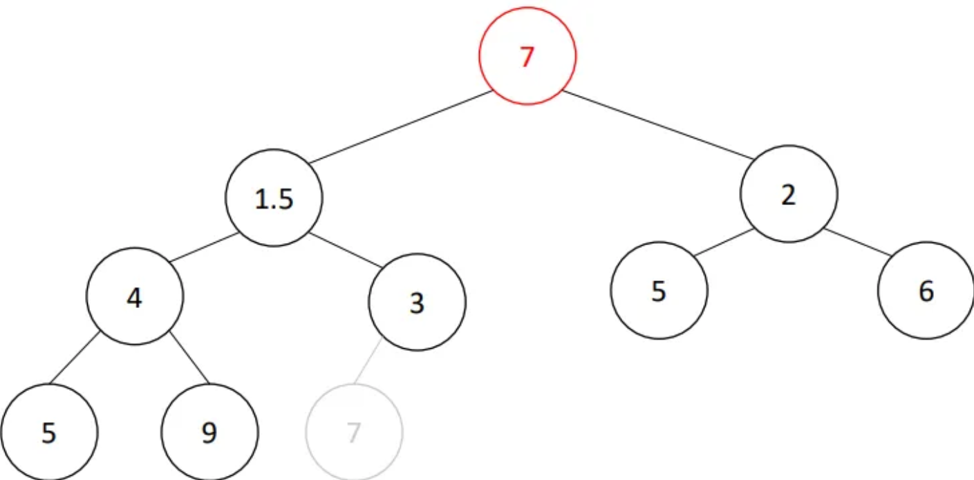 • The value we want to delete is 1, but the node that needs to disappear is 7