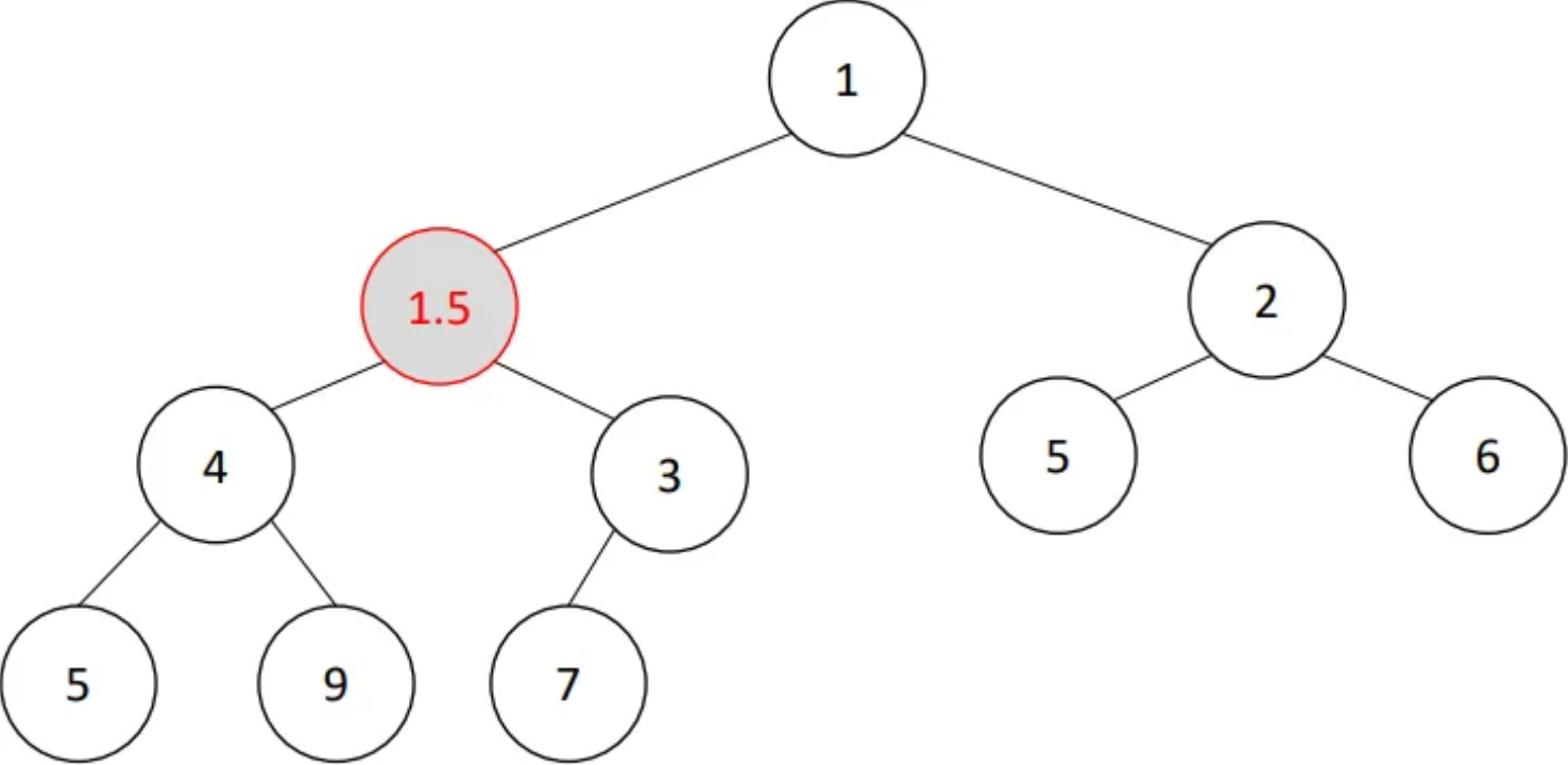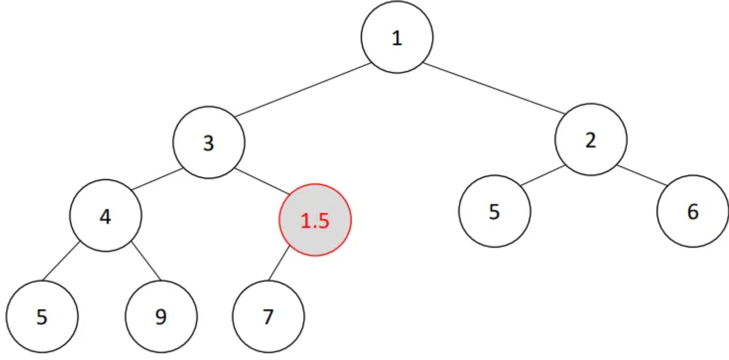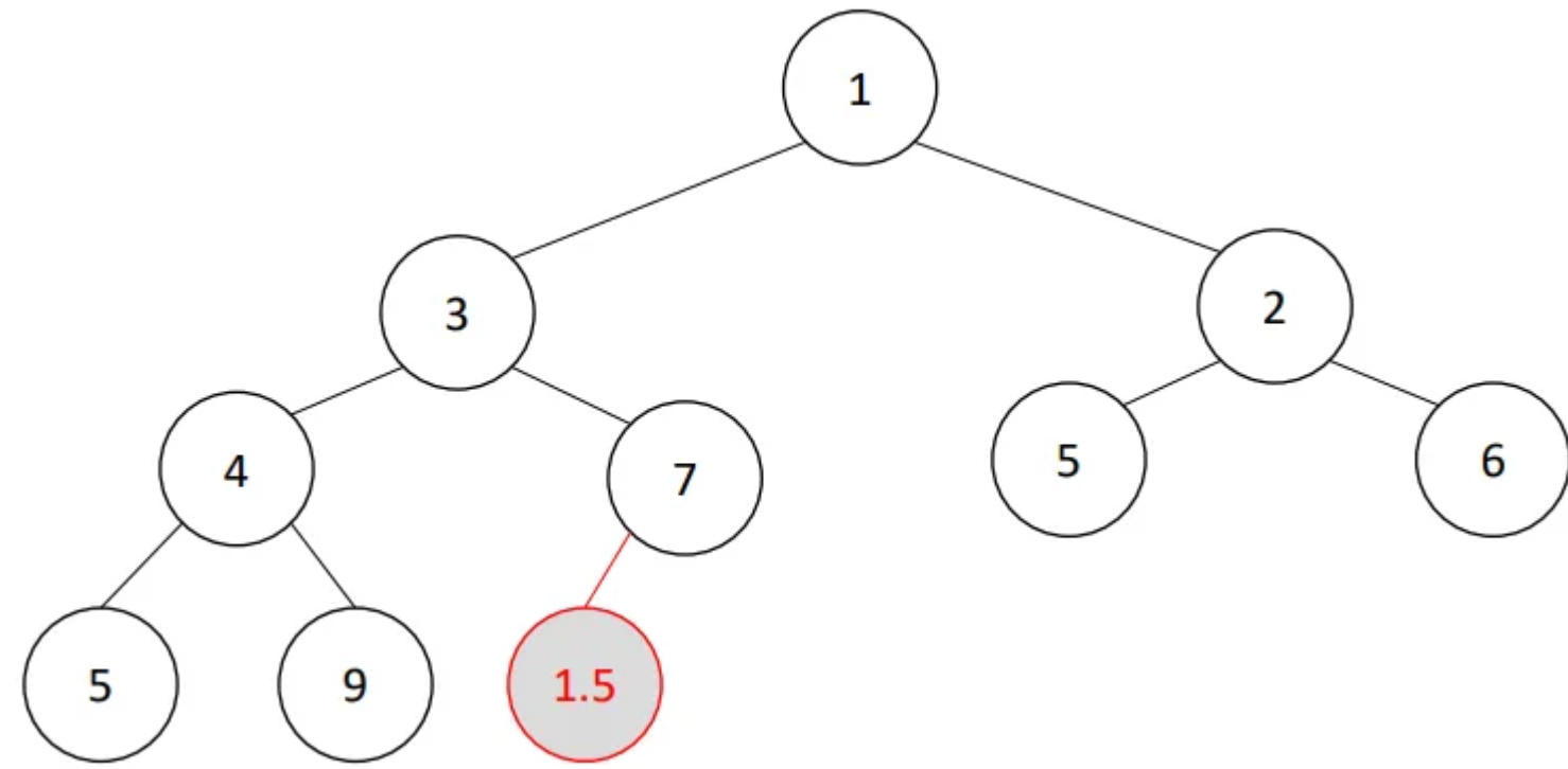 • u need the smaller one because otherwise heap property will be violated