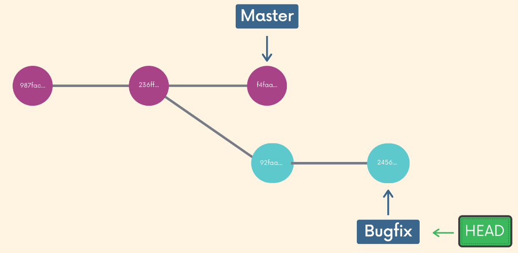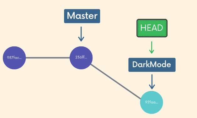 - When you make a new commit on the current branch, the branch pointer moves forward to the new commit, and HEAD moves along with it (since it’s pointing to the branch).