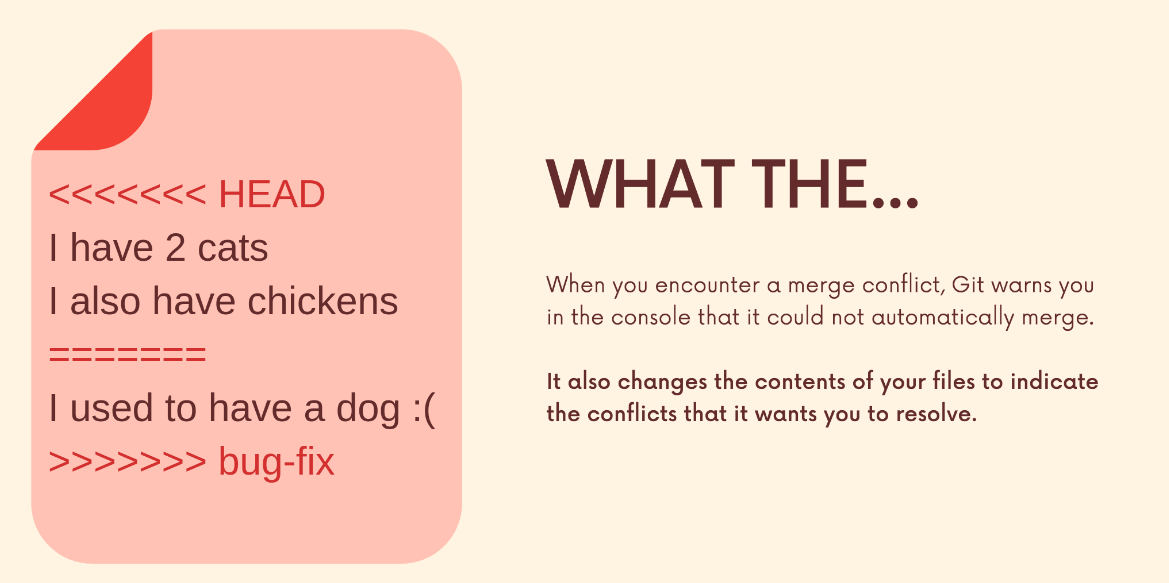 - Depending on the specific changes, git may not be able to automatically merge → merge conflicts (manually resolve)