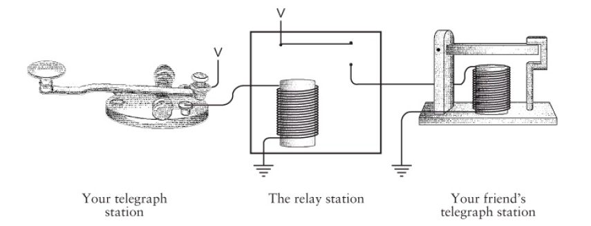 - Pay a guy to sit in a hut every 200 miles. He listens to the weak “click-clack” from the first wire and then re-taps the same message on a new key connected to a new battery and the next 200-mile wire. This “refreshes” the signal.