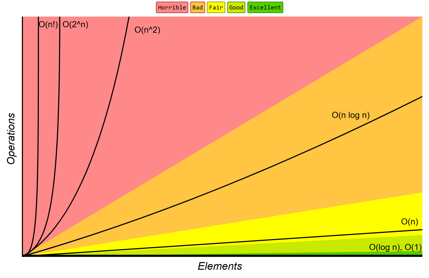 O(n), O(log n), O(1)